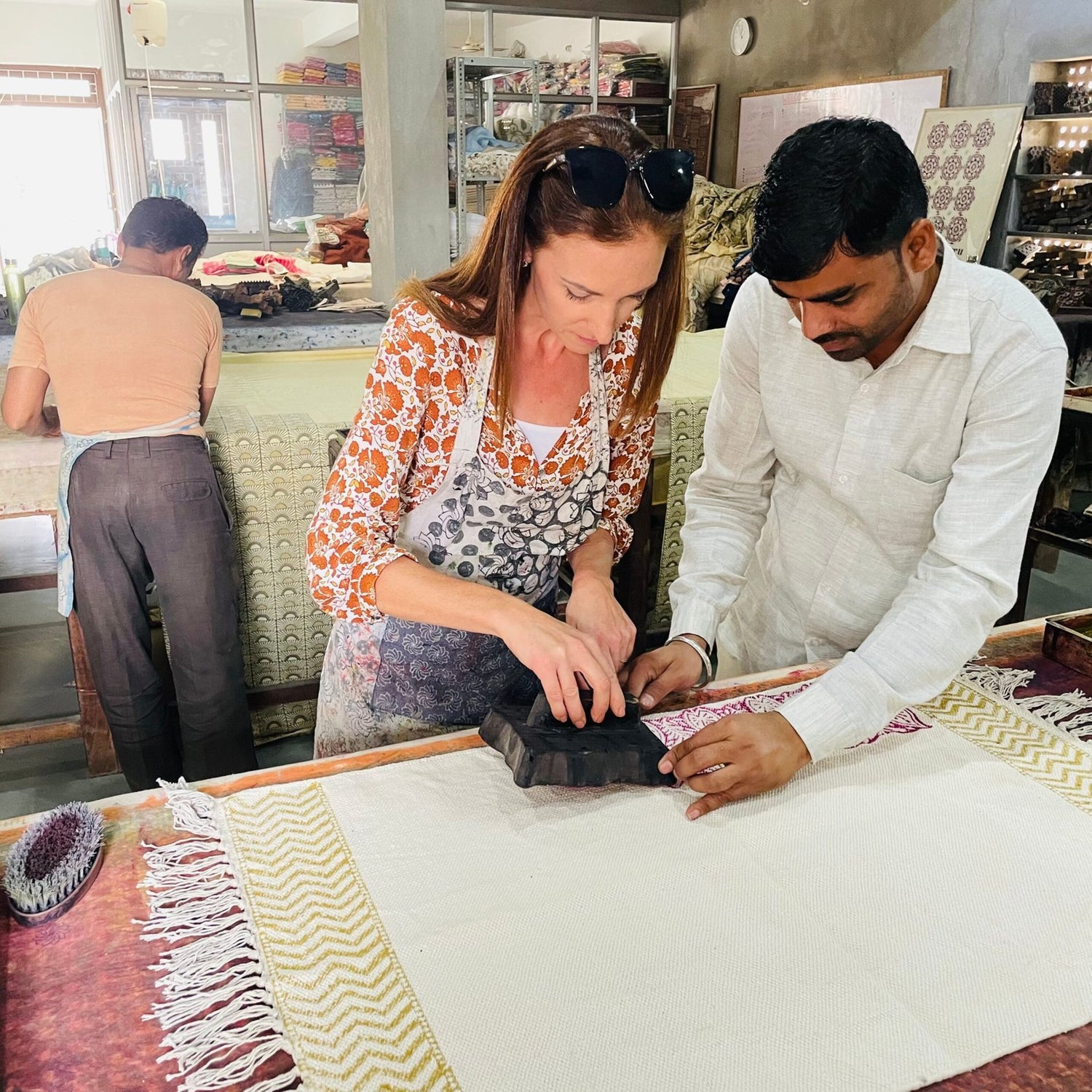 They then dip the block prints into the dye and, on long tables, stamp meters and meters of cotton using a ‘thud’ technique. (I can personally vouch for the use of this term!) It’s hard, skilled work that combines the right amount of dye and pressure to create the uniform patterns we see on our textiles.